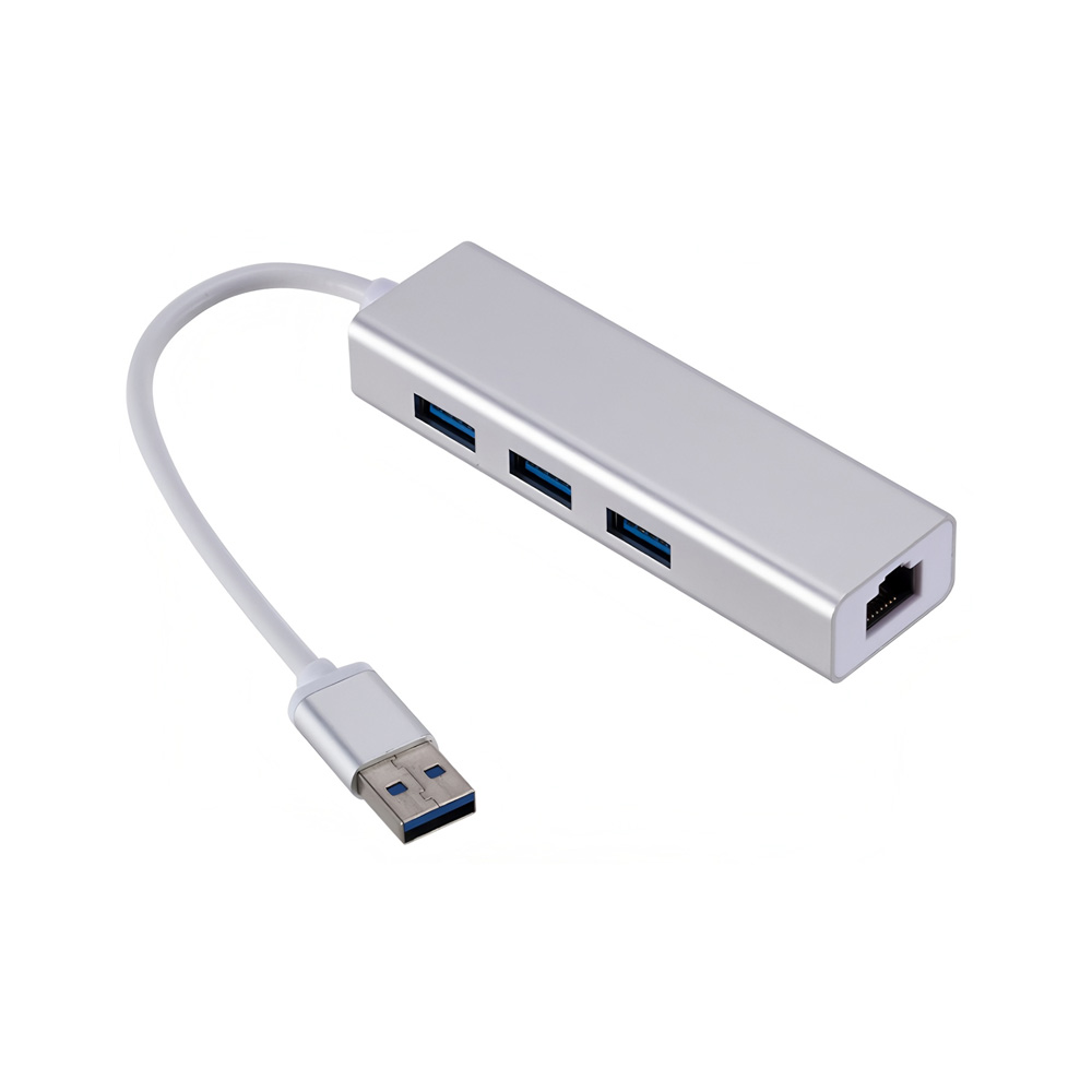 3-Port USB 3.0 Hub with USB3.0 to RJ45 Gigabit Ethernet Adapter, Silver