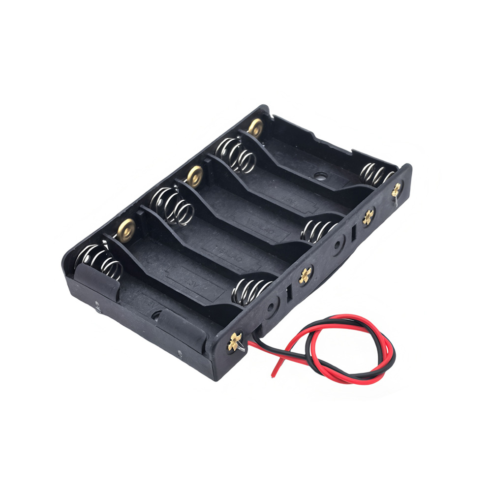 AA Battery Holder with 150mm Lead Cable, Without Cover, 6 Cells