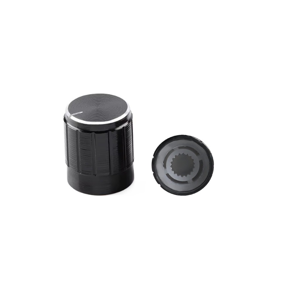 Black 6mm Aluminum Alloy Potentiometer Knob, Outer Size:15mm*17mm, Straight Axis Flower Handle