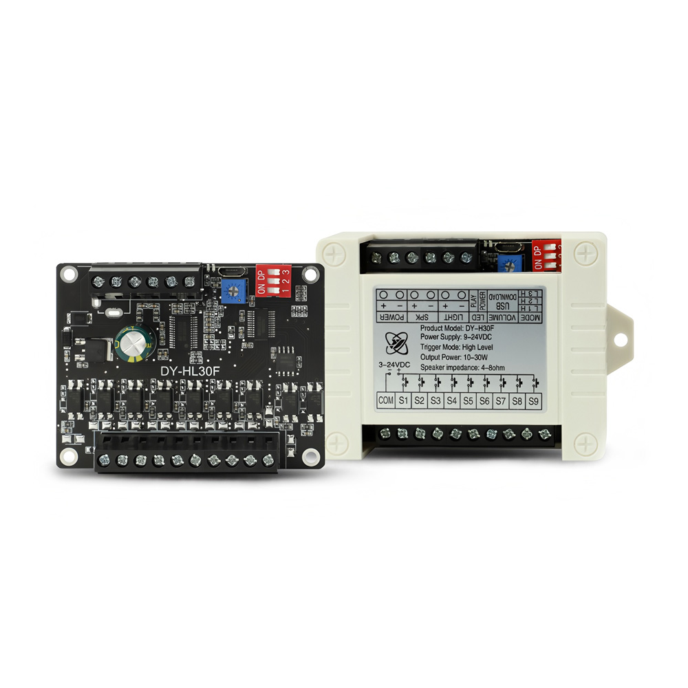 DY-H30FK DC9-24V 30W 9 Channel IO Control Trigger 8M Flash Industrial Level Voice Playback Module with Case, High-Level Trigger Version