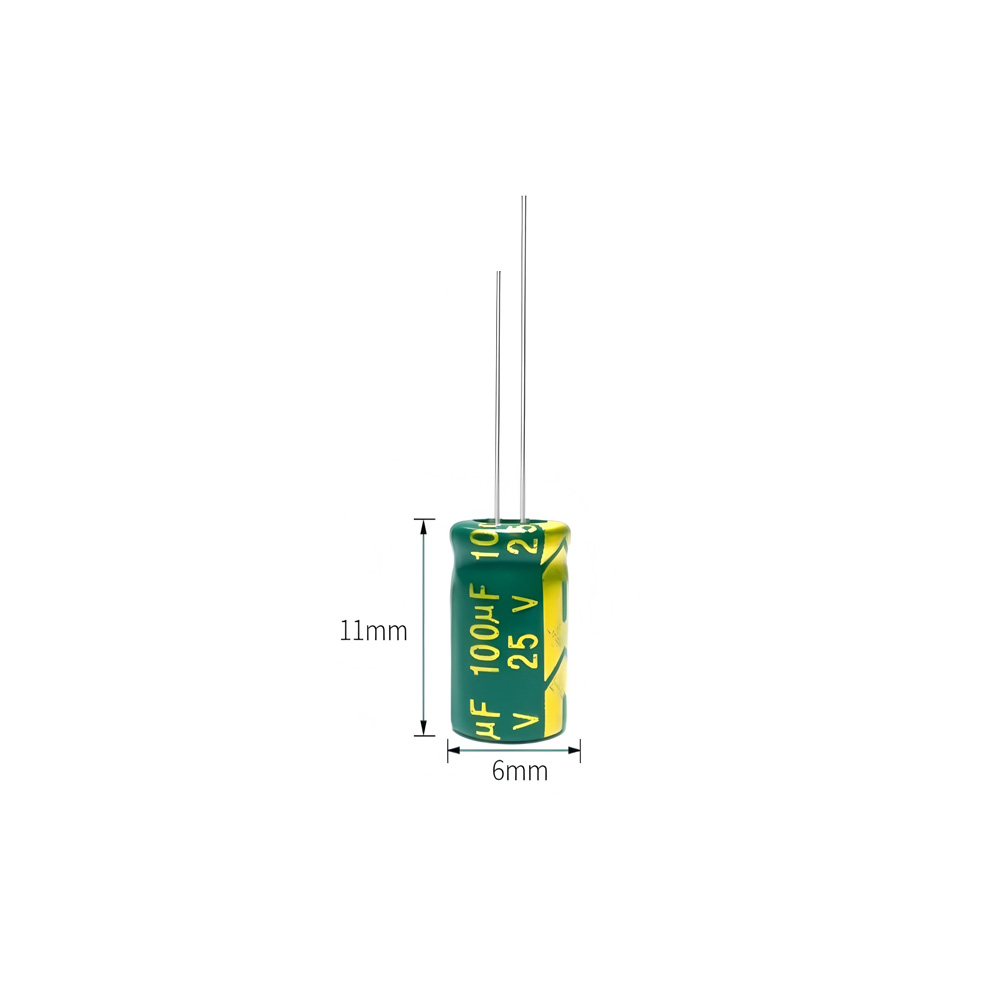 High-frequency Aluminum Electrolytic Capacitor, 25V 100μF, 6mm*11mm
