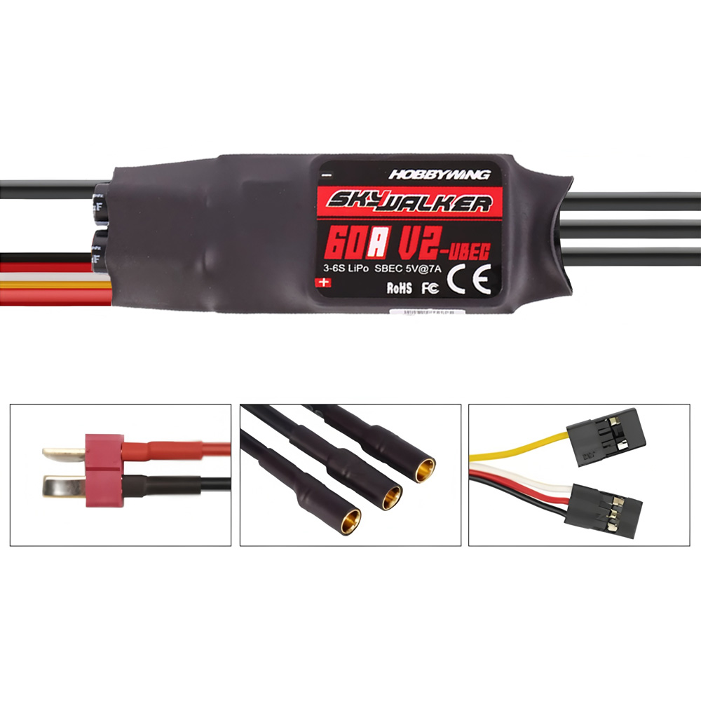 HOBBYWING SKYWALKER 60A V2 ESC Speed Controller, Soldered with T-Style & 4.0mm Banana Plug