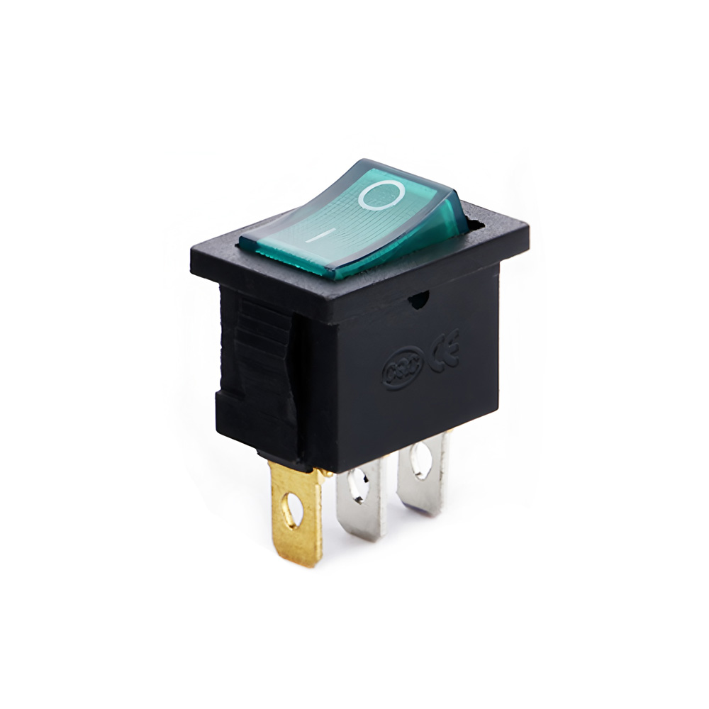 KCD1 On-Off Green Illuminated Rocker Switch, Snap-in, 3 Pin, 250V/6A, 21x15mm