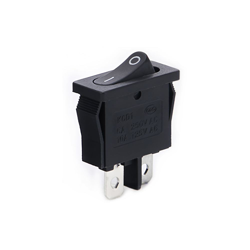 KCD1 On-Off Rocker Switch, Snap-in, 2 Pin, 250V/6A, 21x10mm, Black