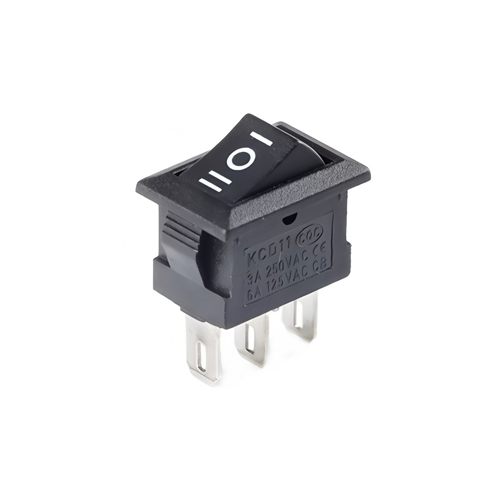 KCD11 Mini Rocker Switch, Snap-in, 3-position 3-Pin, 250V/3A, 15x10mm, Black