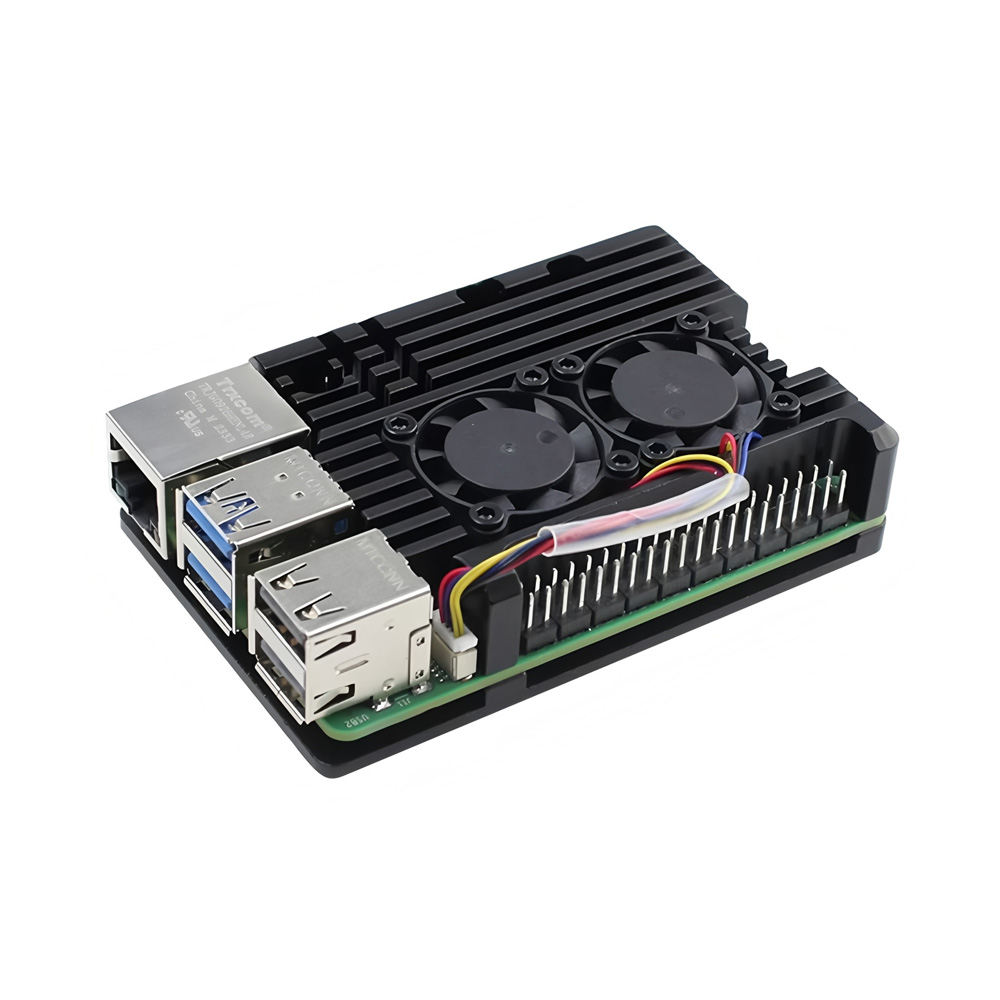 Metal Aluminum Case with Four-wires Speed Controllable Dual Fans for Raspberry Pi 5