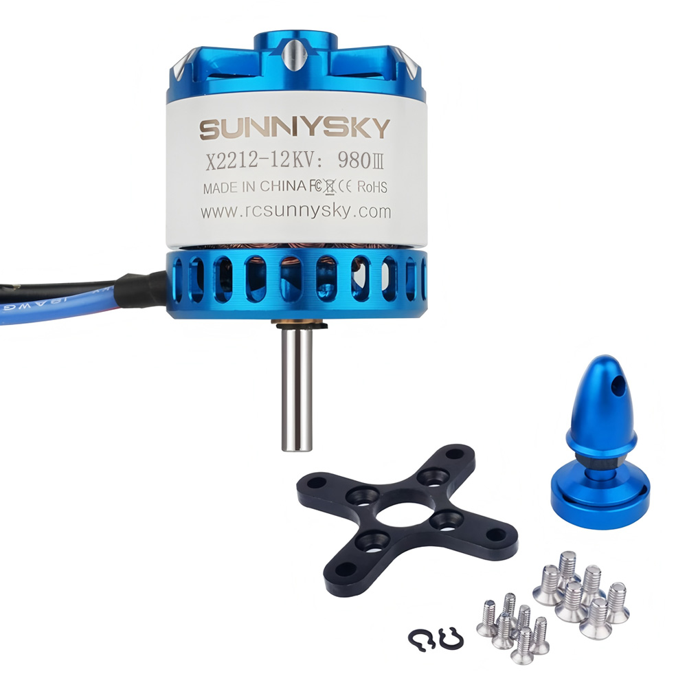SunnySky X2212 980KV Ⅲ Brushless Motor, 3-4S Working Voltage, Max Power 385W, Max Current 26A, Max Thrust 1650g, Lead Cable 100mm, Long Shaft